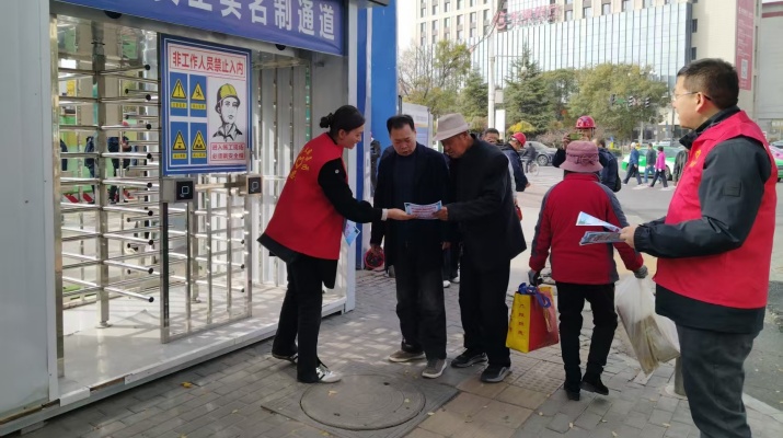 隨后,活動轉(zhuǎn)入消防宣傳實踐環(huán)節(jié)。圍繞“全民消防、生命至上——安全用火用電”主題,邀請消防專家結(jié)合施工現(xiàn)場易燃材料堆放、臨時用電密集等典型風(fēng)險場景,系統(tǒng)講解火災(zāi)預(yù)防要點(diǎn)、初期火情撲救技巧及疏散逃生注意事項。在實操教學(xué)中,專家現(xiàn)場演示滅火器“提、拔、握、壓”規(guī)范操作流程,對黨員們實操過程中的動作偏差逐一糾正指導(dǎo),確保人人掌握核心技能。在模擬火情疏散演練中,全體黨員反應(yīng)迅速、配合默契,有序完成疏散任務(wù),展現(xiàn)出良好的組織紀(jì)律性和應(yīng)急素養(yǎng)?;顒游猜?/span>,黨員志愿者身著紅色馬甲,向施工一線工人及周邊群眾發(fā)放消防宣傳手冊,用通俗易懂的語言講解家庭防火、電動車安全充電等常識,將安全理念傳遞到群眾心中。