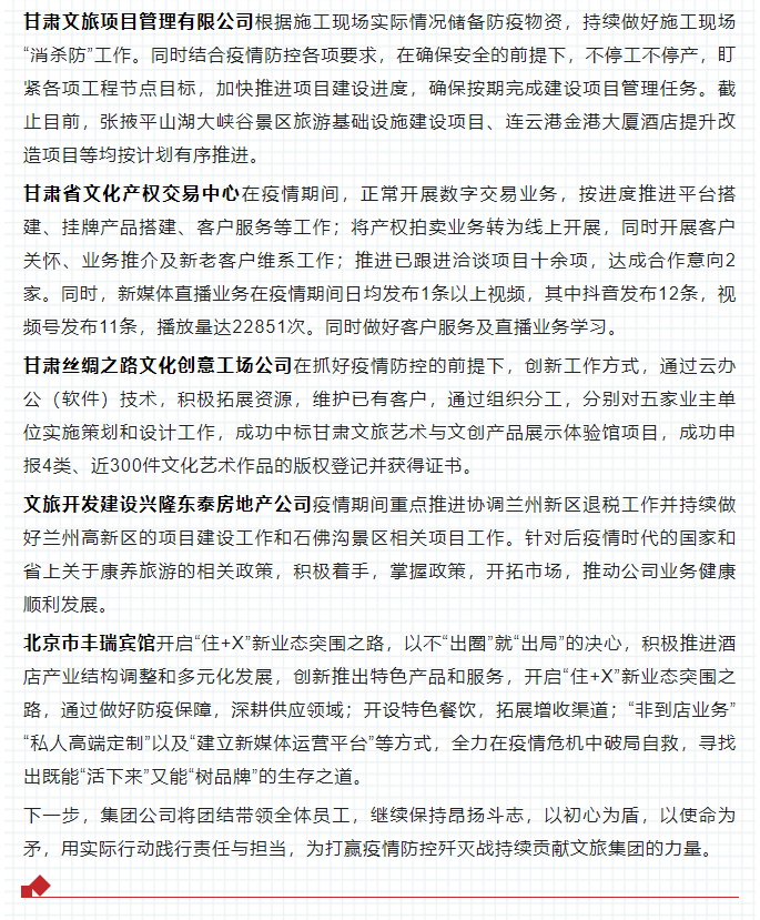 沖鋒在前抗疫情 守土盡責穩(wěn)經(jīng)營——甘肅文旅集團抗疫工作紀實