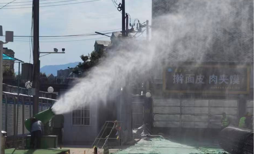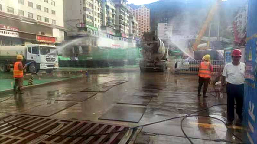 為確保大氣污染防治工作落到實(shí)處,增強(qiáng)項(xiàng)目參建人員大氣污染治理防范意識,保證項(xiàng)目建設(shè)順利進(jìn)行,四公司主要負(fù)責(zé)人與蘭州市環(huán)保局、城市執(zhí)法局、質(zhì)監(jiān)站等單位溝通協(xié)調(diào),結(jié)合項(xiàng)目地處鬧市區(qū)實(shí)際,制定大氣污染防治措施,并組織項(xiàng)目部全體人員召開大氣污染整治專題會議,對大氣污染防治工作的相關(guān)要求進(jìn)行部署和落實(shí)。一是全面落實(shí)公司各項(xiàng)決策部署和子(分)公司《關(guān)于進(jìn)一步加強(qiáng)施工大氣污染管理工作的通知》要求,提高思想認(rèn)識,轉(zhuǎn)變工作作風(fēng),落實(shí)工作職責(zé),切實(shí)抓緊抓實(shí)抓好各項(xiàng)措施落實(shí)落細(xì),以實(shí)際舉措防治大氣污染,確??諝赓|(zhì)量持續(xù)改善。二是加強(qiáng)宣傳引導(dǎo),發(fā)揮黨建工作引領(lǐng)作用,提高政治站位,緊盯目標(biāo)任務(wù),突出重點(diǎn)工作,堅(jiān)持目標(biāo)導(dǎo)向,劃分責(zé)任區(qū),責(zé)任到人,強(qiáng)化考核問效,為安全文明施工生產(chǎn)提供保障。三是狠抓揚(yáng)塵治理。各參建員工要牢固樹立大局意識,責(zé)任意識、擔(dān)當(dāng)意識,嚴(yán)格落實(shí)“六個(gè)百分百”要求,齊抓共管,加強(qiáng)施工現(xiàn)場、道路揚(yáng)塵管控,督促各施工作業(yè)隊(duì)文明施工,嚴(yán)格落實(shí)各項(xiàng)防塵抑塵降塵措施,促進(jìn)項(xiàng)目建設(shè)順利推進(jìn)。四是加大揚(yáng)塵污染治理物資設(shè)備的投入。項(xiàng)目部在施工周邊居民樓上安裝噴淋系統(tǒng)噴霧降塵,施工現(xiàn)場發(fā)泡機(jī)噴水抑制塵土飛揚(yáng),有效減少揚(yáng)塵污染。施工場區(qū)道路、加工區(qū)地面進(jìn)行硬化處理,裸露場地進(jìn)行全覆蓋,鉆孔泥漿自然脫水固化后及時(shí)使用封閉式運(yùn)輸車輛外運(yùn)。車輛出入口安裝車輛自動(dòng)沖洗裝置,專人負(fù)責(zé),檢查車輛外部、底盤、輪胎處不得沾有污物和泥土,嚴(yán)禁車輛帶泥上路。五是加大巡查和預(yù)防力度。項(xiàng)目部安排專人加強(qiáng)對揚(yáng)塵污染源的巡查和檢測,不定時(shí)進(jìn)行場地清潔、灑水,及時(shí)處理揚(yáng)塵污染問題。